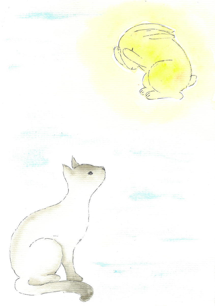 – Ой, опять кошка! – зайчик на всякий случай запрыгнул на потолок.