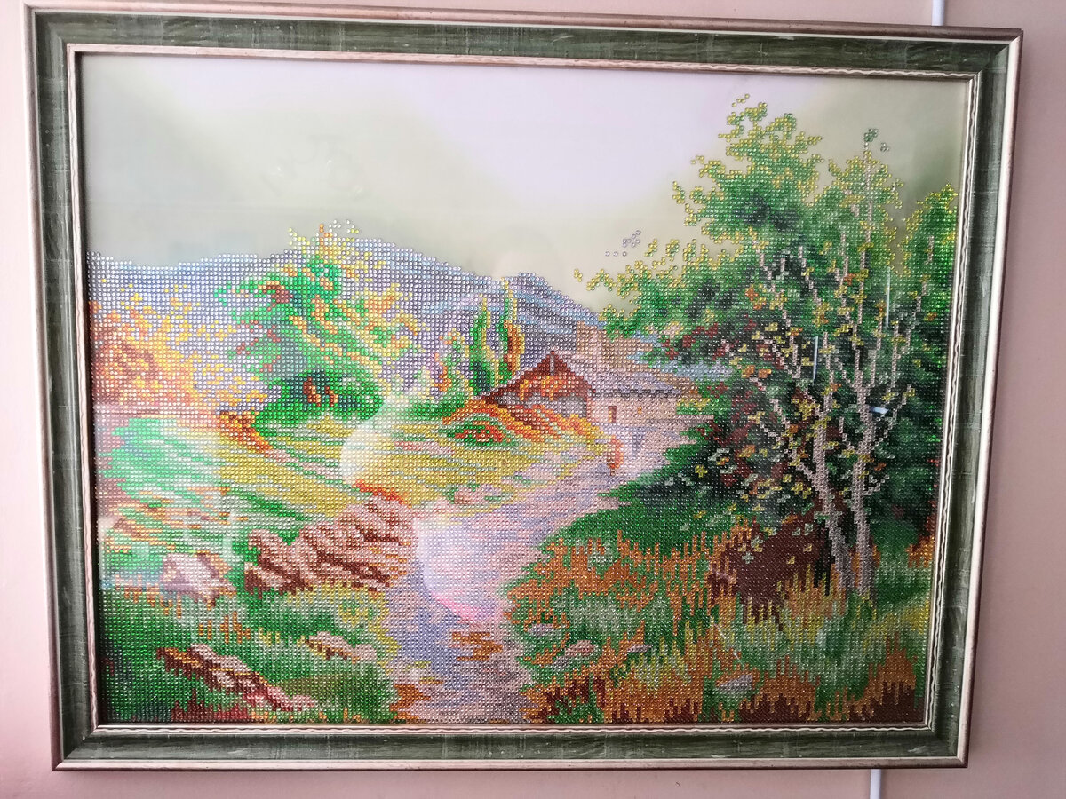Еще одна картина привезенная с Китая- полная выкладка. Оформлена в купленную рамку. Размер 30*40 см.