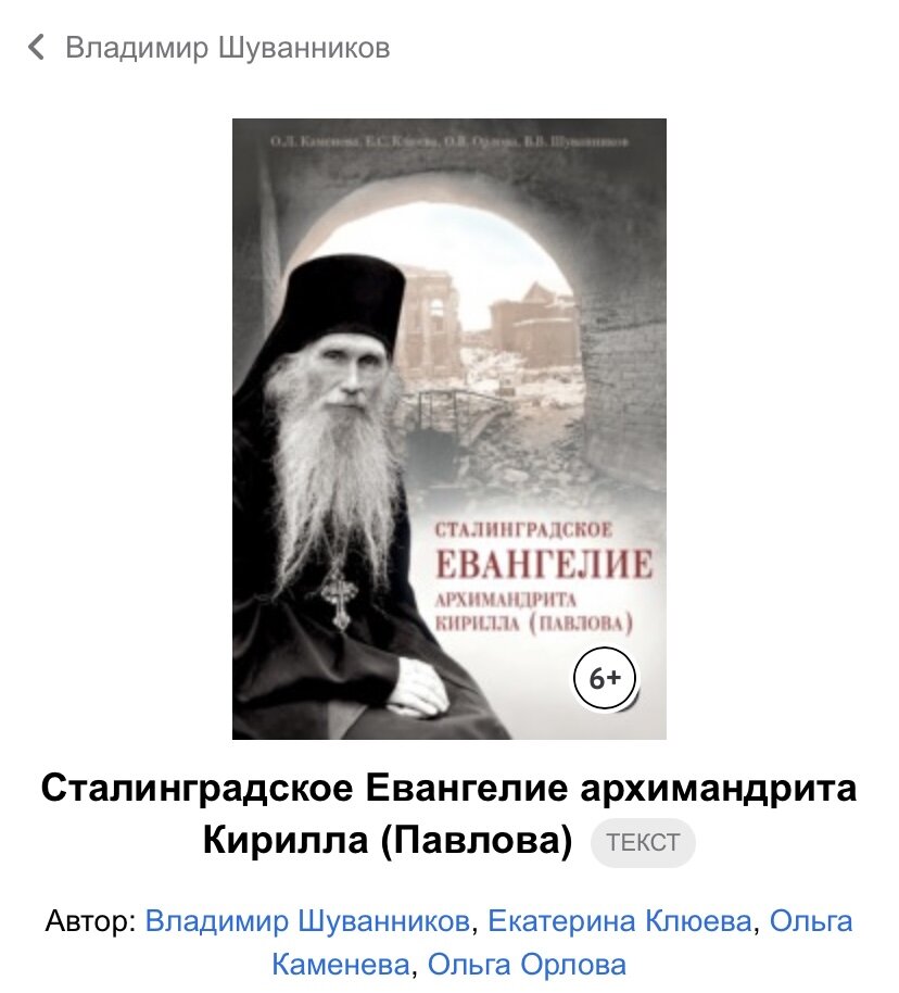 Я очень рад тому отклику, который вызвала у вас новость о выходе замечательной книги о покойном архимандрите Кирилле (Павлове) и небольшой фрагмент из нее, частично размещенный на моей странице и полностью - на сайте журнала "Фома". С момента издания этого альбома мне приходилось лишь сожалеть о том, что его тираж совсем не велик, всего 1000 экземпляров. Но после нашего разговора об этом с издателями было принято важное решение и сейчас книгу об о. Кирилле можно найти на Литрес, приобрести и скачать ее, чтобы хотя бы таким образом получить полный доступ к воспоминаниями об этом удивительном подвижнике, таком близком к нам по времени, явившем в своей жизни поразительный образец смирения и любви - к Богу и к людям. Ссылка на книгу⬇️ https://www.litres.ru/vladimir-shuvannikov/stalingradskoe-evangelie-arhimandrita-kirilla-pavlova/