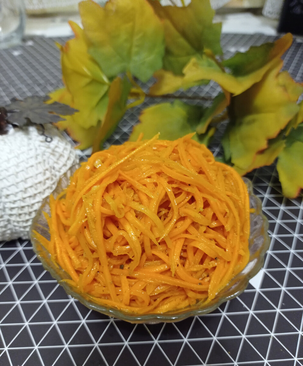Всем доброго времени суток, дорогие читатели и гости моего канала! Самый распространённый овощ на нашем столе - это морковь. Без неё не обходится почти ни одно блюдо. Она присутствует и в первых, и во вторых блюдах, и запеканки делают, и в салаты добавляют, и даже варенье варят из моркови. Это настоящий кладезь витаминов и минералов. Морковный сок рекомендован при малокровии, повышенной кислотности желудка. В общем, это очень полезный корнеплод. И надо его употреблять как можно чаще и в любых видах. А мне что-то захотелось корейской морковочки. И не такой, как в супермаркетах продают, а своей, приготовленной собственноручно. Сейчас её и приготовим вместе с вами. Что нам потребуется для этого. Да, собственно, сама морковь, соль, сахар, перец чёрный, масло растительное, уксус и кориандр. Морковь выбираем красивую, ярко-оранжевого цвета, и обязательно сочную. Дополнительные компоненты: Сам рецепт Морковь - 1 кг Соль - 1 чайная ложка Сахар - 2 столовые ложки Перец чёрный - 1 ча
