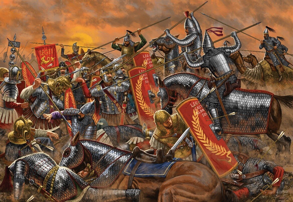 Суть в том, что Александр вел в Персии две войны, одна из них нам хорошо знакома – это сражения при Гранике, Иссе и Гавгамелах, другая же и была причиной подчинения обширных территорий. Александр разбивал свою армию на автономные летучие боевые соединения, которые рассыпались по многочисленной территории, давя локальные очаги сопротивления. Он имел абсолютно те же проблемы, что были у Траяна, Антония или любого римского Императора – стоило Александру выйти из Бактрии, как там вспыхнули восстания, причем с теми же самыми конными лучниками. Но «малая война» была родной стихией македонянина, который с невероятной скоростью (по 50 км в сутки) бросался на каждый очаг сопротивления, устраивая массовый террор в восставших регионах (Диодор пишет о 120 000 перебитых жителях). Ирония в том, что война с помощью автономных боевых соединений не была чужда и римлянам – легион и был таким самодостаточным соединением и раздельные удары мобильных групп активно использовались в той галльской войне. Разница была в том, что македонская армия создавалась «от конницы», которая до Филиппа и была ударной силой. Армия Александра хотя и была относительно немногочисленной, но пехота и конница составляла в ней единое целое. В римских же войсках многочисленная конница была по большей части союзными частями, которые не были полностью инкорпорированы внутрь военной машины, оставаясь отдельными подразделениями со своими собственными командирами и национальным оружием. Они вполне подходили для вспомогательных задач, но сложные спецоперации им уже доверить было нельзя. В итоге парфяне опережали римлян в скорости, для которых, разделение войск на части было огромным риском, нередко заканчивающимся гибелью этого корпуса. Конечно, в Империи это понимали и выстраивали сети опорных фортов, защищали обозные части войсками, это помогало, но также замедляло легионы, углубляя проблему. Со временем римляне, конечно, начали наращивать свои конные войска (а сасаниды, сменившие парфян наоборот пытались набирать пехоту), увы одновременно с этим шло и увядание римской Империи, которая даже находясь на пике могущества не смогла сломить персов.