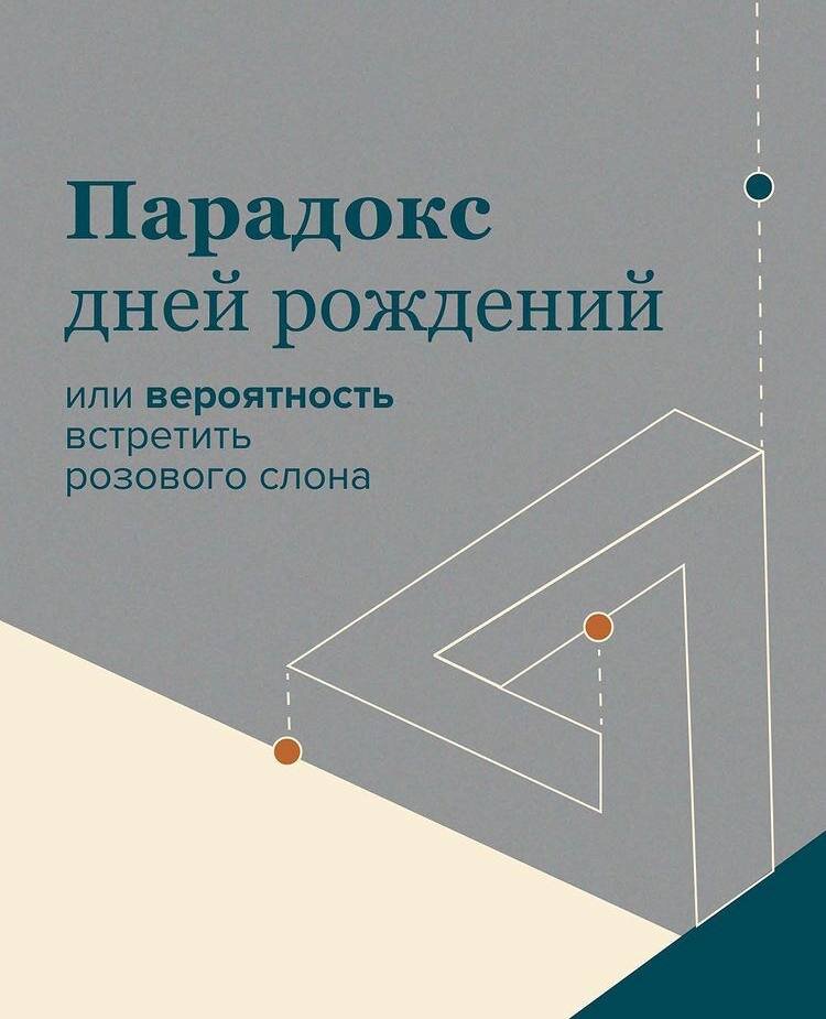 Блондинку спросили: какова вероятность встретить розового слона? Она, не задумываясь, отвечает: 50 процентов. На вопрос, почему она так считает, блондинка пояснила: ну как? мы либо встретим розового слона, либо не встретим… Этот старый откровенно сексистский анекдот про блондинку заставляет, однако, задуматься о том, что вообще такое вероятность, и о том, насколько хорошо мы ее чувствуем. Вообще, вероятностью называют отношение числа благоприятных исходов (в случае блондинки — это встреча с розовым слоном) к числу всех возможных исходов (встречи с любыми слонами). Если взять еще более простой пример с выпадением шести очков на игральной кости, то вероятность будет равна ⅙, поскольку благоприятный случай (выпадение грани с шестью очками) один, а всего граней шесть. Казалось бы все просто, но вот вопрос посложнее: насколько высока вероятность того, что у каких-то двух из 23 человек, находящихся на футбольном поле, совпадут дни рождения? Удивительно, но подавляющее большинство