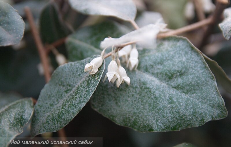 С тех пор как я загорелась идеей попробовать выращивать свои бонсаи, я стала немного другими глазами смотреть на растения вокруг. Что мне показалось важным? Листва круглый год. Стойкость к жаре и относительному холоду. Сравнительно некрупные листья. Общая декоративность. И вот новый вариант на который я раньше совершенно не обращала внимание - Лох или Elaeagnus x submacrophylla syn. Elaeagnus x ebbingei, Ebbinge's Silverberry. В местном климате оно растет повсюду в виде декоративных кустарников, длинными зелеными "бордюрами" вдоль дорог. Поначалу на него и внимание не обратишь - растет что-то неброское, зеленеет круглый год. А вчера прошлась мимо - а у него оказывается очень ароматные цветы! И запах такой приятный цветочный, напоминающий ароматы южных парков. Почему же я к нему присмотрелась? 1. Жарко ли, холодно ли - куст всегда зелен, листья не обгорают и не обмораживаются. 2. Растет и на ярком солнце, и в полутени, и в тени. И на очень бедных почвах. В общем, выглядит совс