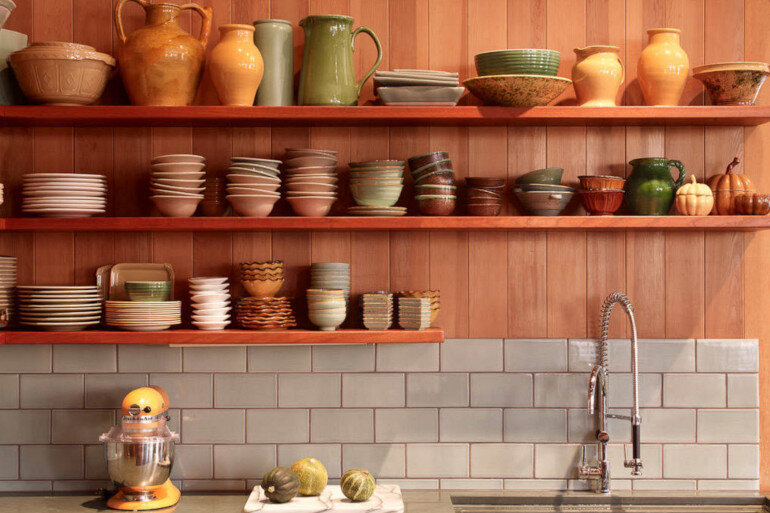 О том, как правильно обустроить кухонное пространство, чтобы оно было и красивым, и функциональным, задумывается каждый, кто планирует ремонт. И один из вопросов, который возникает на этом этапе – выбирать кухонный гарнитур с навесными полками или без? Давайте обсудим плюсы и минусы решения не делать верх кухонного гарнитура. Один из главных плюсов отсутствия навесных шкафов – визуальная лёгкость кухни. Особенно в небольших кухнях это хорошо заметно – навесные шкафы часто выглядят громоздко, перегружают помещение и даже делают потолок визуально ниже. Если организовать вместо них открытые полки, кухня сразу станет визуально просторнее. Второй плюс – удобство доступа. Открытые полки на виду, поэтому, чтобы что-то с них взять, достаточно лишь протянуть руку. В навесных же шкафах прежде, чем что-то найти, порой нужно долго порыться. А если хозяйка ещё и невысокого роста, то постоянно придётся тянуться, чтобы достать что-то с полки. Третий плюс – экономия. Поскольку навесные шкафы составляю