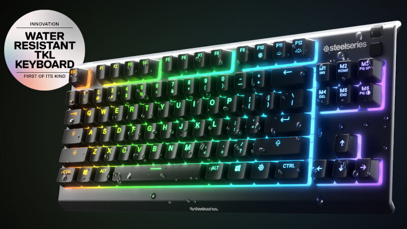 Многие из нас случайно разбрызгивали на клавиатуру чай, кофе или воду. SteelSeries представила первую модель TKL (TenKeyLess, то есть игровую модель – без числовой секции), которая защиту от воды. SteelSeries Apex 3 TKL, водонепроницаемая клавиатура с RGB-подсветкой SteelSeries Apex 3 TKL – предлагает степень защиты от пыли и жидкостей, подтвержденную сертификатом IP32, то есть с ней нельзя купаться, но брызги не должны быть проблемой. Жидкость проходит внутри клавиатуры по соответствующим каналам. Бесшумные кнопки изготовлены из прочных материалов, обеспечивающих надежность при нажатии более 20 миллионов раз и почти бесшумный игровой процесс. Подсветка имеет 16,8 миллионов цветов на выбор и возможностью синхронизации с другими устройствами SteelSeries Мультимедийные функции и запись игрового процесса с помощью SteelSeries Moments Чтобы предоставить больше возможностей, SteelSeries добавила несколько специальных кнопок для управления мультимедиа (яркость подсветки, прокрутка, пауза и к