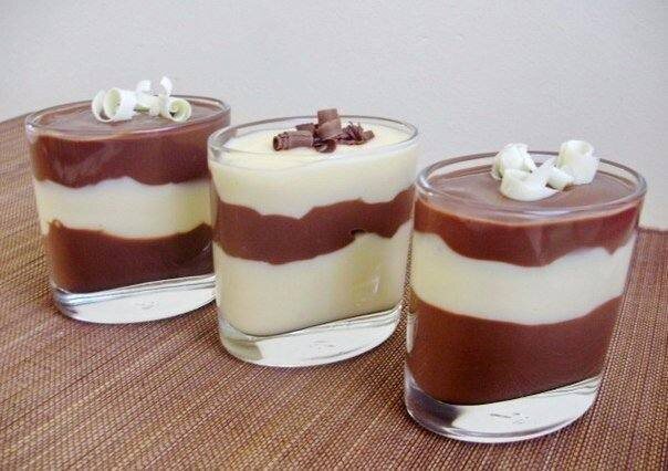 📖 Ингредиенты: - Сахар - 100 г. - Мука - 3 ст.л. - Какао - 3-5 ст.л. - Молоко - 2 стакана - Сливочное масло - 1 ст.л. - Ванильный Сахар - 2 ч.л. 🧑🏻🍳 Приготовление: 1. Смешать сахар и муку, добавить молоко. Смесь прокипятить, дать немного загустеть.Добавить растопленное масло и разделить на 2 части. 2. В 1 часть добавить ванильный сахар, в другую какао. Еще раз нагреть обе смеси до еще большего загустения. 3. Налить в порционные стаканчики, отправить на 1 час в холодильник. #пудинг #десерт