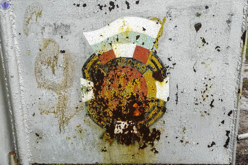 На воротах ещё проглядываются эмблемы регалий дивизии.