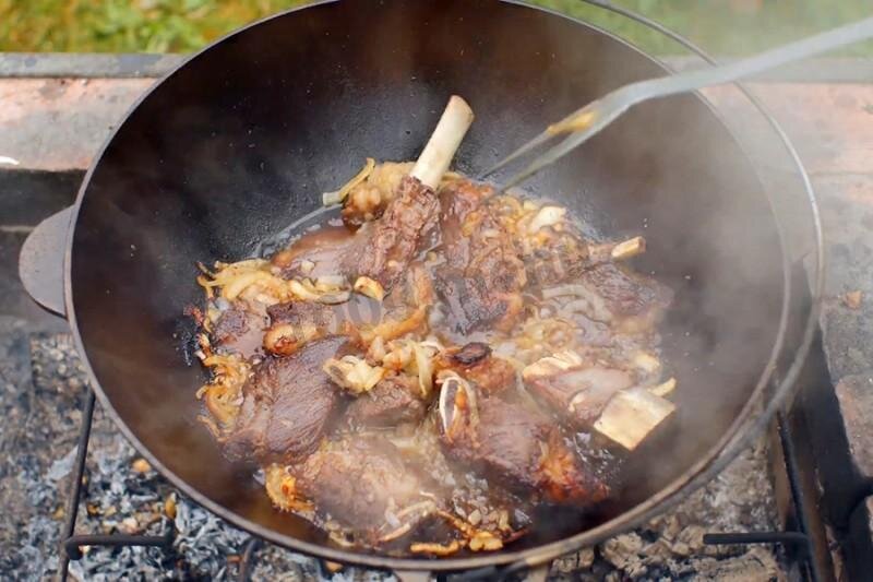 9. Накройте казан крышкой, готовьте 20 минут (или дольше в зависимости от мяса).