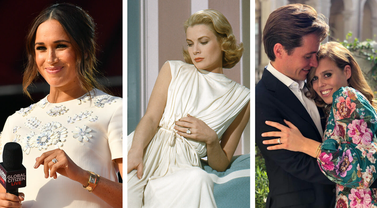 Вам не нужно быть голубых кровей, чтобы почувствовать себя королевской особой в день свадьбы. Независимо от того, является ли Ваш стиль классическим и традиционным или нетрадиционным и альтернативным, мы подобрали вдохновение для обручальных колец, которые заставят любого почувствовать себя королевскими особами. Вот Ваше подробное руководство по поиску "королевского" обручального кольца с бриллиантом. 1. Меган Маркл, бриллиантовое кольцо герцогини Сассекской огранки «кушон» (свадьба состоялась в 2018 г.) Бриллиантовое кольцо: Бриллиантовое кольцо из трех камней с алмазным центром огранки «кушон» весом 3 карата, обрамленное двумя меньшими камнями на ободке из желтого золота. В чем его особенность: пара, заботящаяся об окружающей среде, получила центральный камень из Ботсваны, а два боковых камня принадлежали матери Гарри, принцессе Диане. Недавно Меган появилась с модернизированным кольцом с теми же камнями на тонкой полосе с микропаве - девушка имеет право изменить свое мнение. Где мож