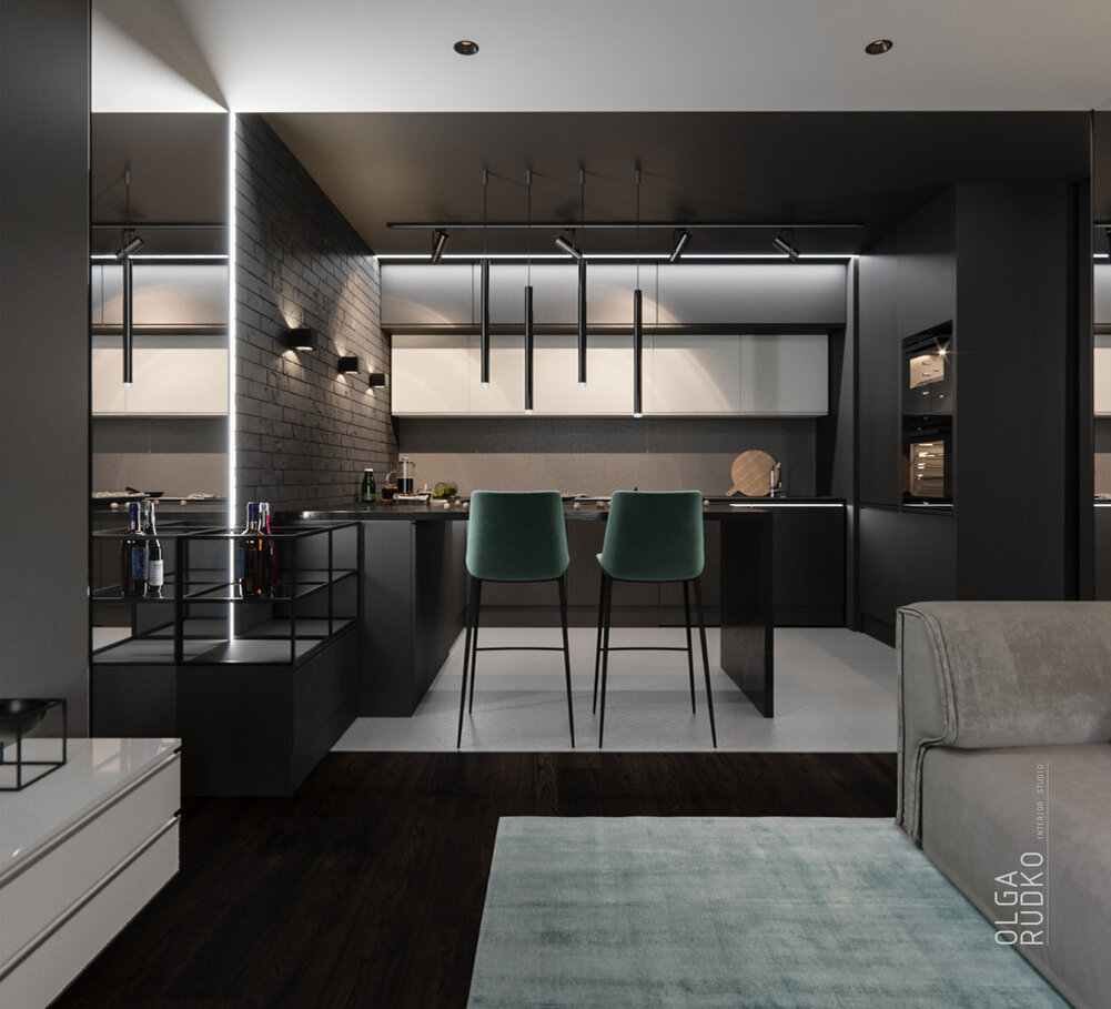 Изначально заказчики хотели получить интерьер в стиле лофт, но в ходе ведения проекта пожелания изменились и интерьер получился скорее современным, минималистичным с лофтовыми нотками.