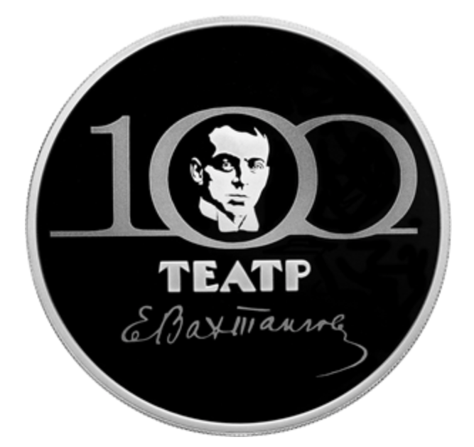 Россия 12 октября 2021-го выпустила коллекционную серебряную монету в связи со столетним юбилеем работы театра, названного в честь Е. Вахтангова. На реверсе памятных 3 рублей находится логотип театра, специально созданный к знаменательной дате - 100-летию работы. В центре цифры «100» находится небольшой портрет русского и советского театрального режиссера Евгения Богратионовича Вахтангова, в основе которого лежит фотография, сделанная в 1918-м году. Под словом «Театр» расположено факсимиле режиссера и актера Вахтангова.