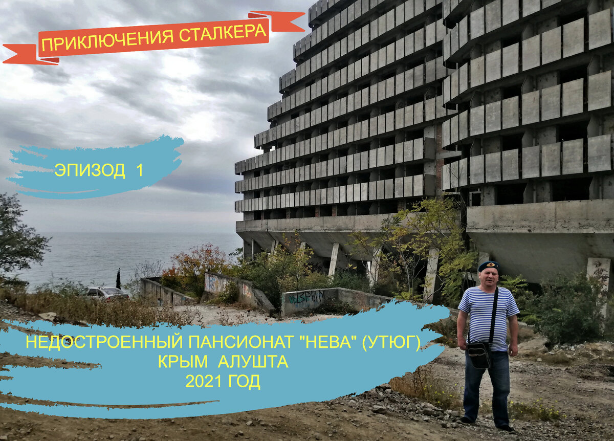 с 7 по 9 октября 2021 года, находился в Крыму, в Алуште. Думаю сталкеры побывавшие там, обязательно должны посетить "УТЮГ" - недостроенный пансионат "Нева". По моему мнению, это одно из культовых мест для сталкеров в Крыму.