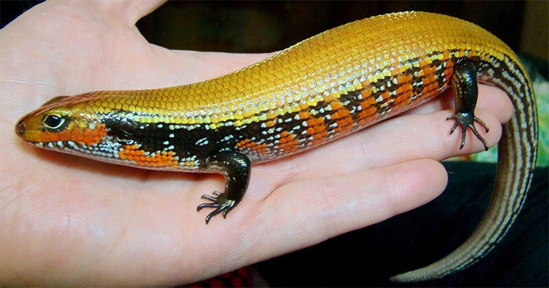 Сцинки или гладкие сцинки (Scincidae) - самое большое семейство ящериц, насчитывающее более 1 500 видов. Для большинства сцинксов характерно круглое, цилиндрическое тело, плавно переходящее в шею, и мелкая, гладкая чешуя. Большинство видов обитают на земле и имеют сравнительно короткие ноги. Однако есть и дендроидные представители, а также подземные виды, у которых полностью отсутствуют ноги. Среди часто предлагаемых, в основном обитающих на земле видов - аптекарский сцинк (Scincus scincus), африканский синехвостый сцинк (Trachylepis quinquetaeniata) и великолепный или огненный сцинк (Lepidothyris fernandi). Эти виды не подпадают под действие законодательства об охране видов в Германии. Всегда следует избегать приобретения диких видов, выловленных в неволе, в пользу видов, выращенных в неволе. Сцинки в основном ночные; даже дневные виды часто живут очень скрытно. Многие виды можно содержать поодиночке, парами или в небольших гаремах (один самец с 2 - 4 самками). Самцы обычно несовмест