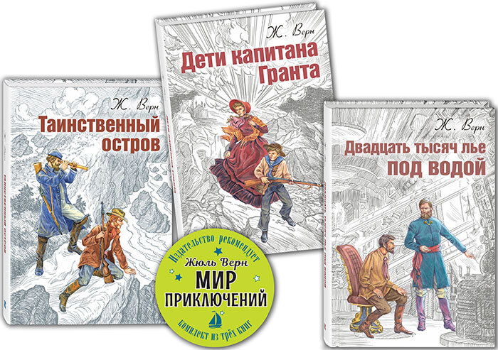 Мы собрали произведения этого классика, объединив их в тематическом наборе «Жюль Верн. Мир приключений». Сюда вошли книги «Дети капитана Гранта», «Двадцать тысяч лье под водой» и «Таинственный остров», составляющие трилогию. Книги из этого набора, по нашему мнению, должны стоять на полке у каждого подростка. Они проверены временем, на них выросло несколько поколений читателей. При этом романы по-прежнему актуальны и современны.