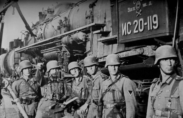 Первой проблемой была русская железнодорожная колея, которая отличалась от европейской. Ее ширину выбрал Николай I, который понимал стратегическое значение железных дорог в случае войны. В первые же недели в руках у немцев оказалась около двухсот наших паровозов и триста с лишним вагонов под широкую колею. Конечно, этого было недостаточно. Вот и приходилось немцам «перешивать» рельсы, чтобы обеспечить снабжение войск на Восточном фронте. Для ускорения проводимых работ они передвигали один из двух рельсов под свою колею. Часто ставили и третий дополнительный рельс, что позволяло пускать по полотну не только свои составы, но и трофейные советские. Однако пропускная способность перешитых путей в 1941 году не превышала на двупутных железных дорогах 25 пар поездов в сутки, а на однопупутных и того меньше. Это было явно недостаточно. Поэтому на восстановление путей были брошены не только гражданское население, оставшееся на оккупированных территориях, но и военнопленные и узники концлагерей.