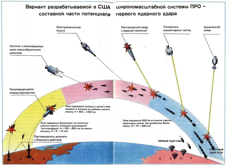 "Звездные войны" или программа СОИ в середине 1980-х годов взбудороажила все человечество. Тогда Президент США Рональд Рейган показал всему миру новую "стратегическую оборонную инициативу" (СОИ). Американцы собирались разместить ядерые ракеты на космических спутниках, что позволяло быстро поразить любую цель на Земле. Защиты от такой системы вооружений не было ни у кого. Это было чрезвычайно дорогостоящий проект, и СССР не мог ответить "паритетно". Есть мнение, что и у американцев не было денег на эти вот "звездные войны", просто они использовали Голливуд для пропаганды этой идеи. Целью было - победа в гонке вооружений и свержение СССР. Президент Рейган в прошлом популярный голливудский актер, он знал силу Голливуда и рекламы. Были сняты фильмы, включилась пресса и т.д. Как бы то ни было - наши поверили. Испугались, но разрабатывать в ответ аналогичные меры не решились. Очень дорого, а денег в СССР было мало, нефть тогда стоила около 10 долларов за барель (сейчас 50-60). Борис Ефи