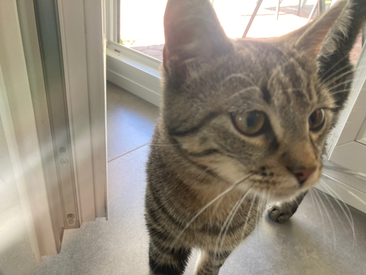 Послышалось шипение и какое-то хаотическое движение в кухне. Что такое? Иду посмотреть, а там уже над тарелками нависает молодой котик Егор Егорыч. И в такой спешке начал поглощать еду из мисок, что даже забыл развернуться. Так и ест, упираясь хвостом в стену. Нет времени развернуться. Бегал по улице, играл и сильно проголодался. До своего дома добежать не успел, решил заглянуть к нам на перекус. Вспомнил, что пару раз здесь уже был в своем совсем юном возрасте. И на удачу решил забежать. Единственное, что ему не понравилось, что в доме есть взрослые коты. И эти коты на правах хозяев хотят его прогнать из теплой кухни. Поэтому поглотить пищу надо побыстрее. Имя этому котику дано гостевое, как по настоящему его имя мы не знаем. Но вот у нас он стал Егор Егорычем. Дело было прошлой осенью, заливал на улице дождь и было слышно как на улице возле входной двери активно мяукает кот. Выглянув в окно, увидели как совсем маленький котенок старается запрыгнуть на перила. Вышли и занесли его в до