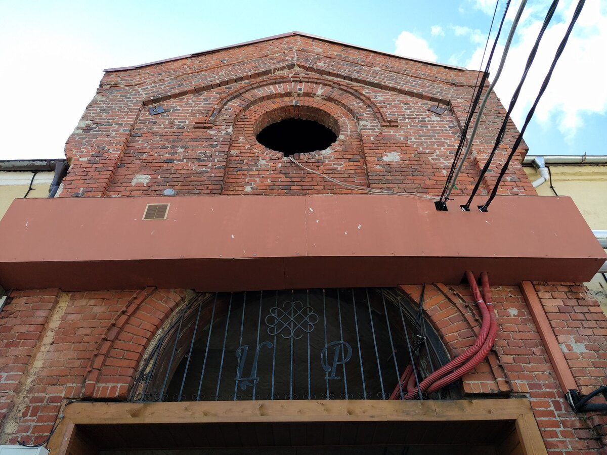 Первое фото я сделала каким-то чудом, подняв глаза кверху. Ну в общем и понятно! Хорошо, если треть (то, что прямоугольное в центре, там впихнуто в это краснокирпичное здание.
