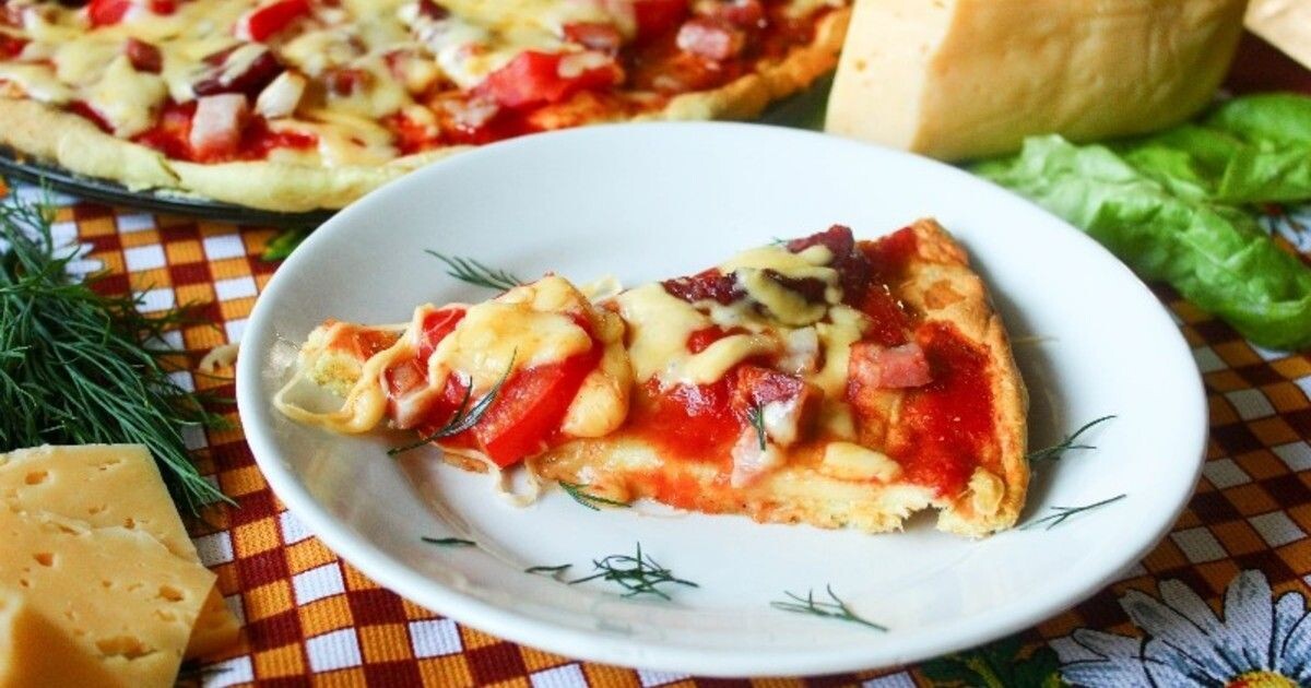Иногда нам так не охота тратить на готовку много времени, а что-то вкусненькое съесть очень хочется. Поэтому всегда есть выход! Предлагаю приготовить очень вкусную и сочную пиццу в микроволновке. Готовится все быстро, просто, а результат вас точно удивит! Ингредиенты: Тесто: Начинка: Этапы приготовления: В миске смешиваем муку, воду и соль, тщательно перемешиваем руками до однородного состояния. Тесто не должно липнуть к рукам. Если прилипает, то добавьте ещё немного муки. Вот и все! 2. Сейчас очень необычный момент. Выпекать тесто можно в микроволновке без посуды! Тщательно моем круглую тарелку из микроволновки и смазываем растительным маслом. 3. Теперь по всей поверхности этой тарелки распределяем наше тесто и делаем небольшие бортики 4. Отправляем наше тесто в микроволновку минут на 5. Но периодически просматривайте за состоянием теста, чтобы оно не подгорело! 5. Пока выпекается тесто, нарезаем начинку. Конечно, режьте так, как вам больше нравится, но я колбасу нарезаю небольш