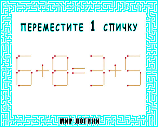 Так что решайте, чуть-чуть да разомнете свои мозги. Ну и детям дайте тоже порешать))) Напоминаю задание: сделайте равенства верным, переместив всего одну спичку. Не забывайте ставить "лайки" и "репосты". Ответы ваши жду в комментариях! Спасибо за внимание! До новых задачек!