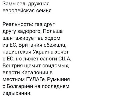 Новые посты из всеми любимых соцсетей на тему политики и вообще про наше общество в международных отношениях. Точнее как всё это видим мы и наши светлоликие опполибиральные демократически настроенные партнёры. №1. Странное у них понятие о семье. Хотя раньше было нормальное, но потом что-то пошло не так. №2. А у них всё так. Пришли-нагадили-ушли. Главное потом извиниться и всё, ничего не было, а если и было, то быльём поросло и вообще не мы. №3. Ох и переживают же за нашу молодёжь наши западные "партнёры". Голодать готовы, лишь бы у нас было хорошо. №4. По другому победить не получается, вот и перекрывают нам кислород как могут. №5. Да их послушаешь и начинаешь понимать почему никто им не верит. Ни одно предсказание и аналитическое измышление не сбылось. И этот в копилку. №6. Тоже можно отнести к отношению наших партнёров к нашей науке. Кричать, что мы всё только воруем, а не сами придумываем и создаём. №7. Со временем, я на это очень надеюсь, его просто закроют. Или пусть останется то