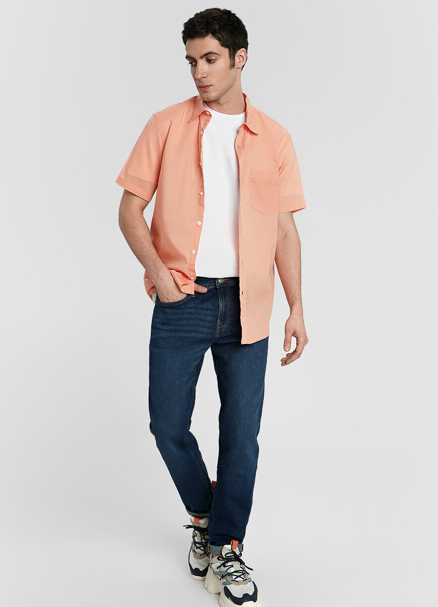 2. Слим-фит (Slim) — один из самых популярных силуэтов в мужской моде. Этот полуприлегающий крой, зауженный книзу, обычно можно найти в различных цветах, варках и плотностях денима.