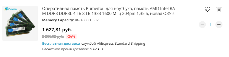 За то время, что я и мои знакомые заказывают комплектующие на Алиэкспресс, проблемы с качеством были примерно у 15% компонентов. Часть проблем проявились сразу, часть - в течение года после установки. Что обычно заказывают на таких площадках? Правильно, то, на что максимальное различие в цене с магазинами. За несколько лет в топе таких компонентов, прежде всего, держится оперативная память - разница с магазинами на новую память от 50 до 100%. Однако, какую память я имею в виду? Новую память, которую на Алиэкспресс продают под сотней разных сложнопроизносимых названий: Kllsree, Ankowall, Pumeitou, MLLSE, ZiFei, в общем почти как товары в Икея. Судя по количеству заказов, народ активно голосует рублем. Действительно, экономия выглядит привлекательной. Возьмем, например, популярный для апгрейда тип памяти DDR3L и размер 8Гб. На Алиэкспресс есть предложения подобных модулей от 1600 рублей (а в период распродажи с купонами еще дешевле)...