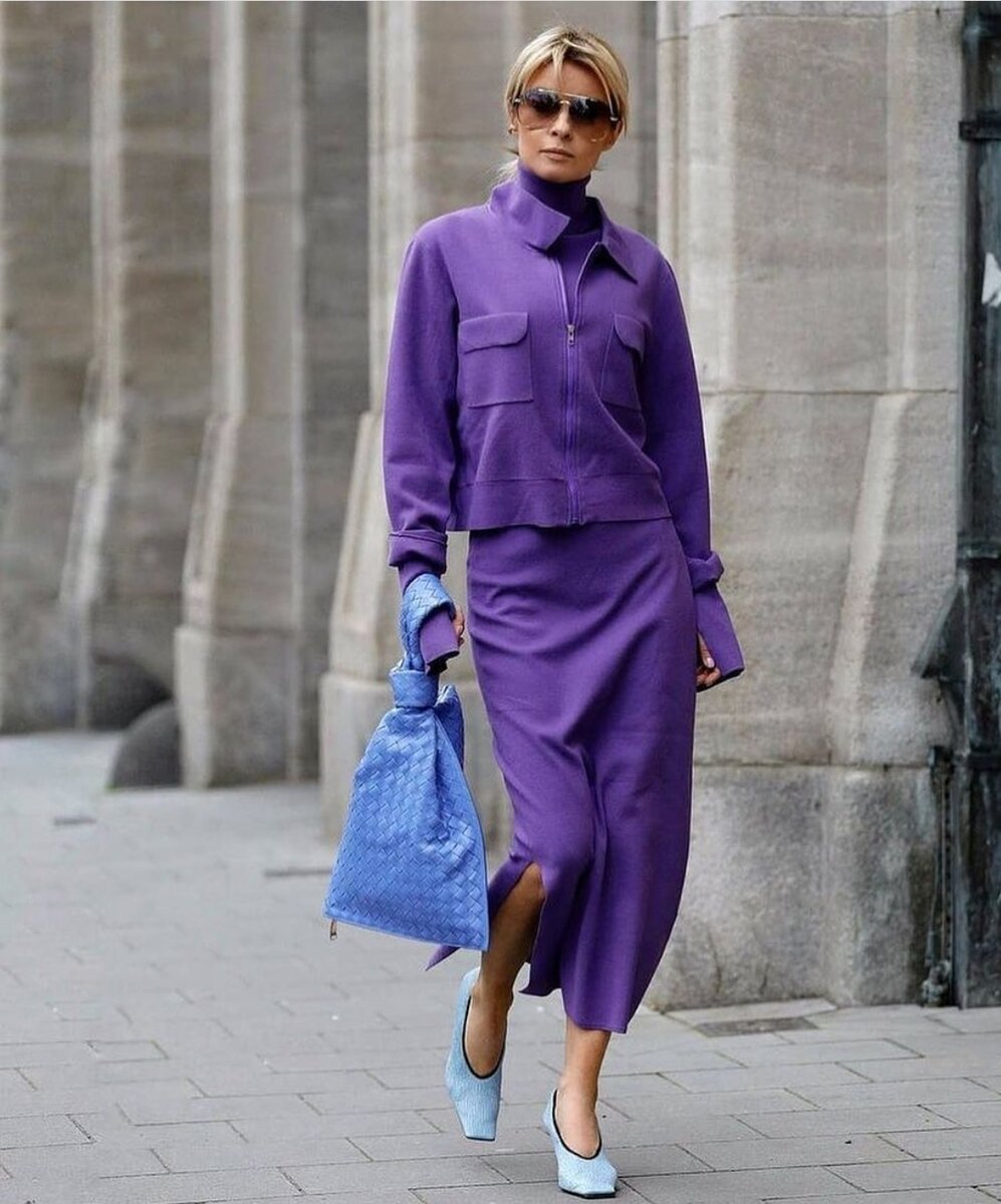 Не всем подходят очень яркие цвета, а вот насыщенные и сочные могут позволить себе женщины любого возраста. Я говорю о фиолетовом цвете. Увидев раз, девушку или женщину в фиолетовом наряде на фоне золотой осени, вы непременно захотите и себе такой образ. Я постаралась поискать удачные решения образов в сети интернет Яндекс Поиск и в Instagram. Чтобы мои читательницы не тратили своё драгоценное время, а с удовольствием насладились этими примерами. Для меня это очень благородный и изысканный оттенок. Он очень коммуникабельный и легко сочетается с другими цветами. При своей насыщенности, он не пестрит. Одежду такого цвета можно надеть и на деловую встречу и на торжественное мероприятие. Спектр его оттенков тоже восхищает. Он может быть светлым и тёмным, почти чёрным. Многие женщины предпочитают тёмный фиолетовый цвет вместо чёрного. Для повседневного и спортивного стиля фиолетовый тоже прекрасно подходит. Фиолетовый цвет никоем случаем не увеличит ваш возраст. Он наоборот отвлечёт