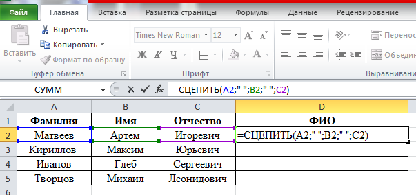 Как в Excel сцепить значения из разных ячеек в одну ячейку и как вычленить часть данных из ячейки