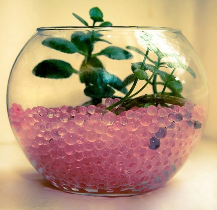 Относительно недавно в магазинах для цветоводства появился гидрогель. Данный продукт сразу привлек внимание покупателей благодаря удивительному внешнему виду. Продукт может продаваться в виде гранул, порошка или кристаллов. Он способен поглощать и удерживать влагу. При намокании элементы значительно увеличиваются в размерах. Производители добавили в их состав безопасные красители, благодаря которым гранулы пестрят разнообразием красок. Более крупный гидрогель используют в качестве заменителя субстратов и грунтов для домашних растений. Растения высаживают в прозрачные контейнеры, создавая удивительные живые композиции. Мелкий продукт смешивают с землей. Такой состав часто используют для проращивания семян. Часто продукт выступает в качестве декоративного дополнения к интерьеру. Смешав несколько ярких цветов в одной прозрачной емкости можно придать декору красок и выразительности. Такой элемент станет акцентом и дополнит стиль.