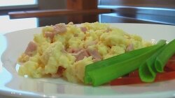 Приготовлено по рецепту из "Книга о вкусной и здоровой пище": ВЗБИТАЯ ЯИЧНИЦА В маленькой кастрюле растопить сливочное масло, сюда же отбить яйца, влить немного молока (на 3 яйца - 1 ст. ложку масла, 2 ст. ложки молока), посолить и взбить вилкой. После этого поставить на средний огонь и варить, непрерывно помешивая деревянной лопаточкой. Когда яичница превратится в жидкую кашу, снять ее с огня и некоторое время помешивать, затем выложить яичницу на тарелку или в чашку, обложить гренками из белого хлеба, поджаренными на масле. Такую яичницу можно подать с овощами, а также с мясными продуктами, например с вареной ветчиной. копченой грудинкой, сосисками. Эти продукты нарезают мелкими кубиками, слегка поджаривают на сковороде с маслом, затем смешивают с яичницей. Такие продукты, как жареные грибы в сметане, жареные дольки свежих помидоров, вареные зеленые бобы, зеленый горошек, заправленный маслом, обычно кладут на яичницу сверху, когда она уже готова, #рецепты #вкусно #видеорецепты #кулин