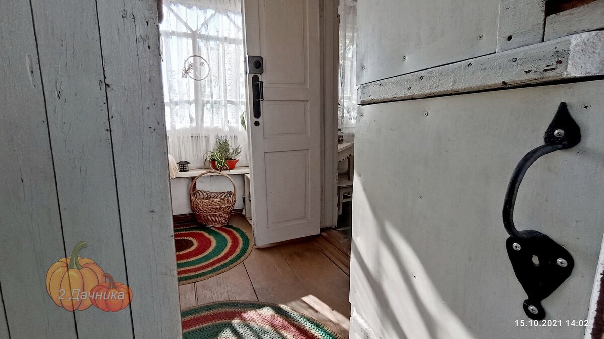Открывается дверь и вы попадаете в маленькую деревянную веранду. Она выполняет роль прихожей. Здесь мы оставляем обувь перед тем, как войти в кухню-столовую.