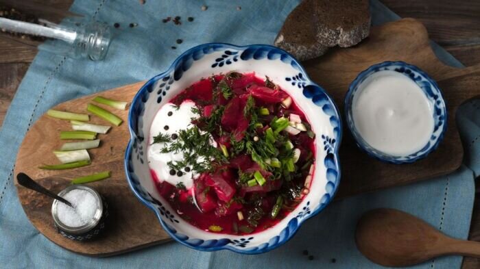 • Ввести в бульон вместе со свеклой, зажаркой и специями;