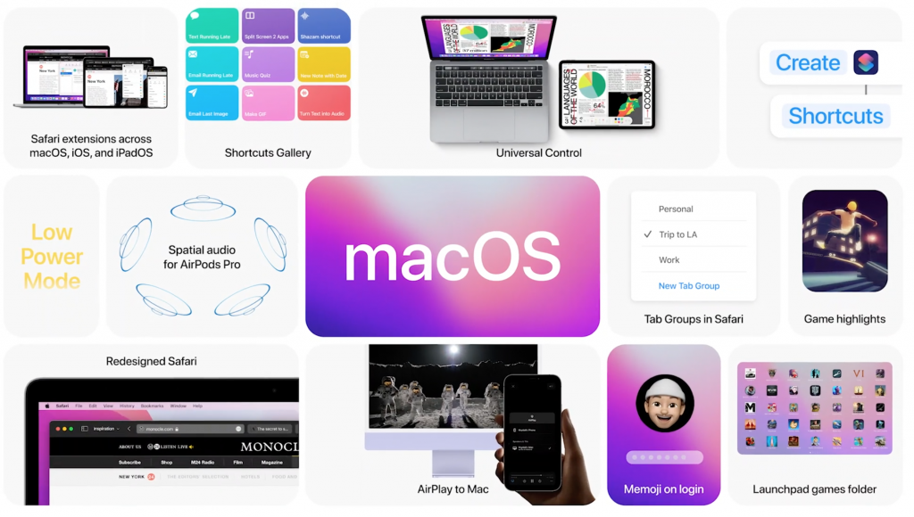 Доброго времени суток, друзья, сегодня поговорим про новые возможности MacOS. Широкие возможности. Тесные контакты. Таков новый слоган MacOS Monterey, которую представят уже в понедельник 18 октября. Обновлённый FaceTime Теперь во время звонка по FaceTime с друзьями можно будет смотреть фильмы, слушать музыку или показать свой экран, благодаря функции SharePlay. Помимо этого добавлена возможность пространственного аудио то есть голоса собеседника будут звучит из той части экрана , в которой они находится (будет доступно на моделях Mac 18 года и новее) А также уникальная система изоляции голоса, которая снижает фоновый шум, а если вам необходимо, чтобы окружающие слышали абсолютно все, просто включите функцию «широкий спектр» Режим сетка Теперь собеседники в FaceTime будут располагаться в сетке, причём все будут одинакового размера, это особо удобно при звонке с огромным кол-вом людей. Портретный режим Благодаря чипу М1, во время звонка по FaceTime Вы сможете использовать данный вид