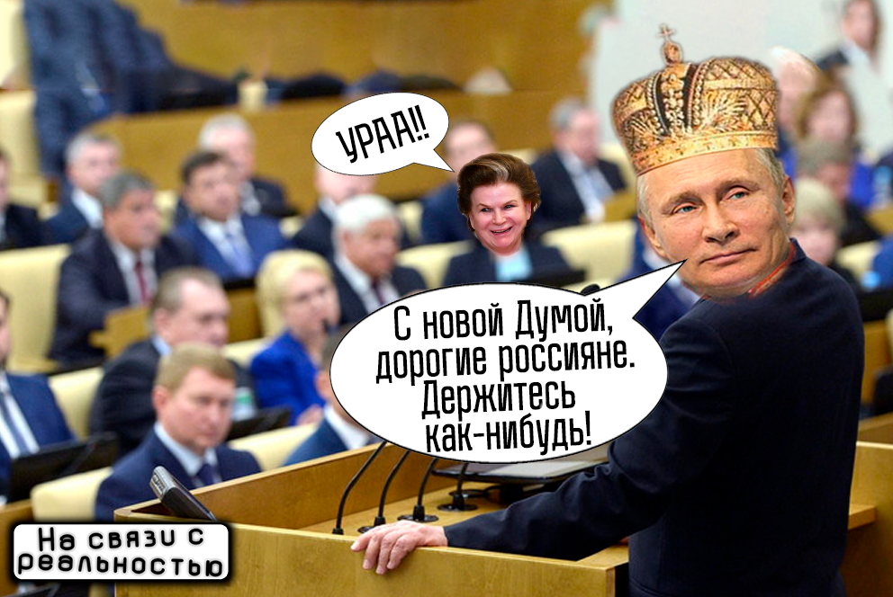 12 октября состоялось первое заседания нового созыва Госдумы, сформированного по результатам одних из самых грязных «выборов» в истории России. Теперь большая часть из 450 депутатов (а именно те, которые народом выбраны НЕ были) будут за почти полумиллионную зарплату принимать репрессивные законы, воровать и всячески ухудшать жизнь россиян. Но давайте рассмотрим первые дни работы этого органа. Даже они не прошли без совершенно нелепых действий, нарушения российских законов и наплевательского отношения на граждан России. Начну хоть и с не слишком значительного, но очень показательного нарушения закона РФ новым созывом Думы. Так, статья 33 Регламента Госдумы (от 22.01.1998 № 2134-II ГД) гласит: Но открывала заседания никто иной, как заслуженная обнуляторша, отправившая детей жить за границу - Валентина Терешкова, несмотря на то, что в нынешнем созыве был депутат старше. В этом есть какая-то грустная символичность: - работа нового созыва началась с нарушения закона – очень показательно. Н