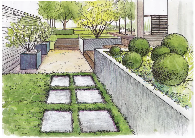 Например, ширина парковой дорожки определяется удобством прохода и количеством бетонных плит, укладываемых на нее. В качестве модуля используется отрезок в 75 см. Ширина дорожки соответственно будет 1,5, 2,25, 3 м и т. д.