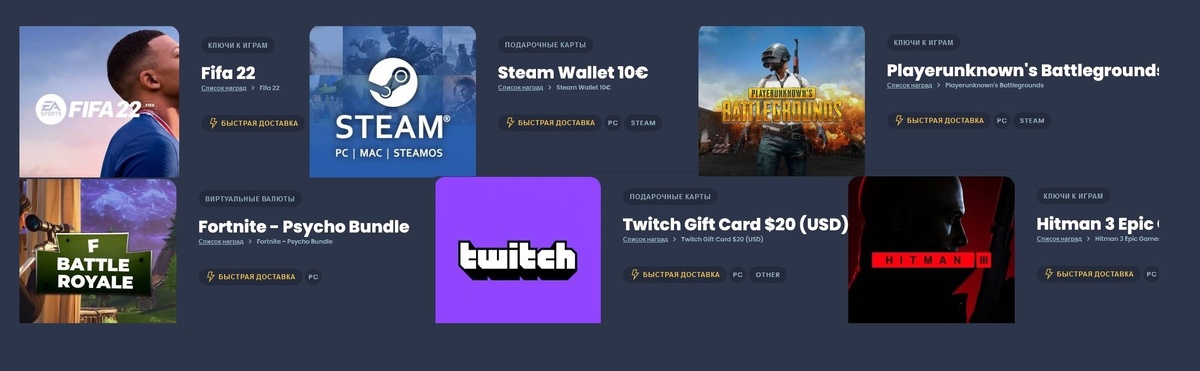 Подарочные сертификаты STEAM, TWITCH,