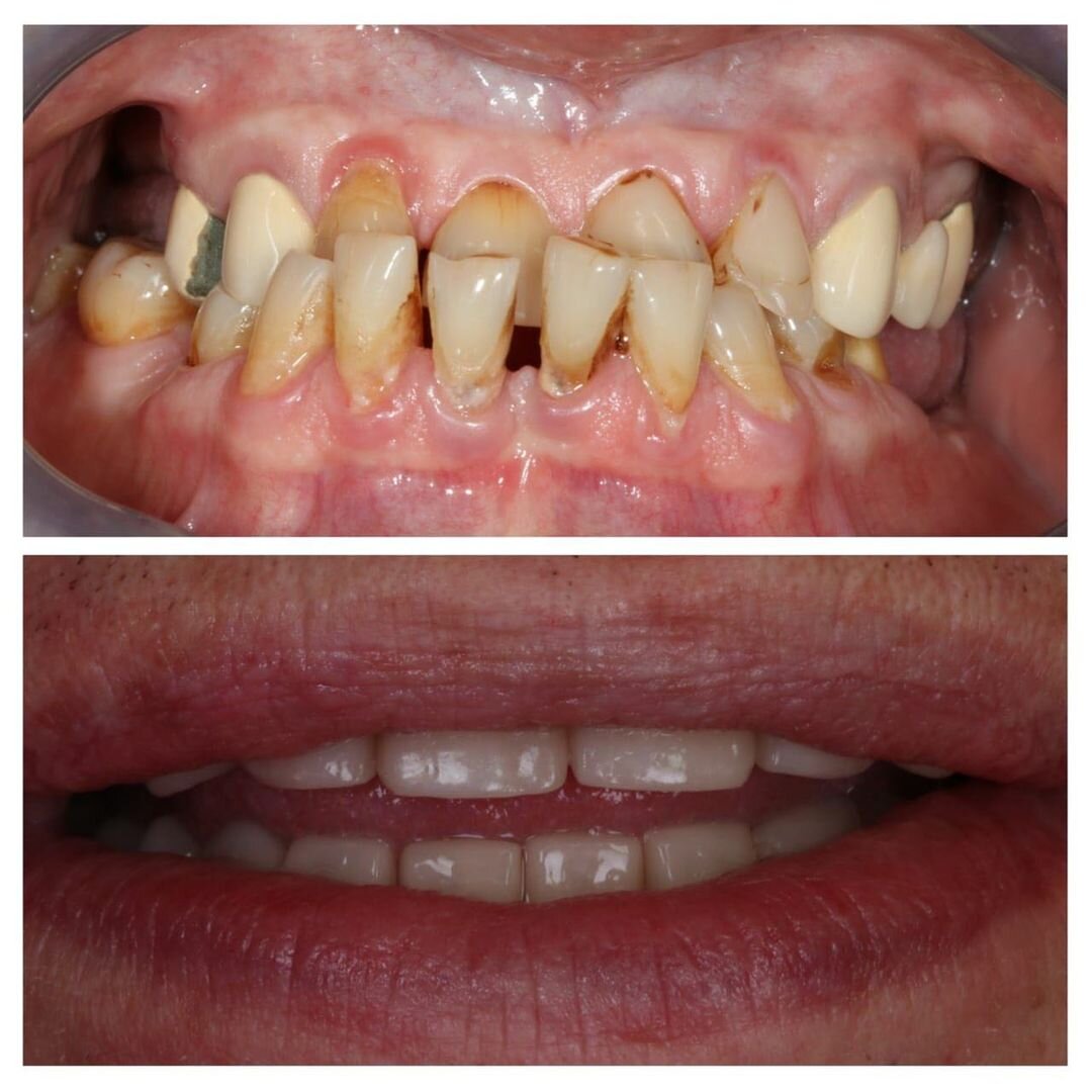 • Установили коронки с опорой на импланты и родные зубы, восстановив разрушенные единицы;