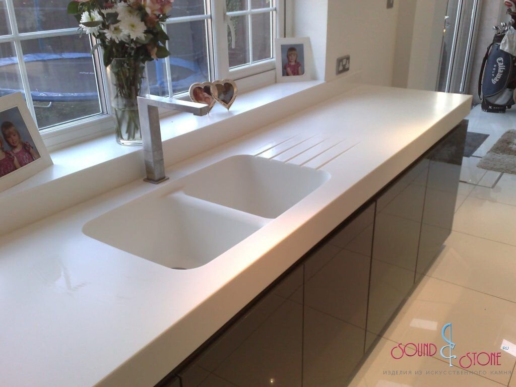 Наиболее популярны акриловые столешницы и столешницы из агломерата. В акриловых столешницах минеральные вещества связываются акриловой смолой. Разнообразная расцветка обеспечивается добавлением красителей. К недостаткам акриловой столешницы можно отнести чувствительность к высоким температурам. Горячие предметы оставляют на поверхности следы. Также такая столешница подвержена механическим воздействиям. Ее легко поцарапать ножом.