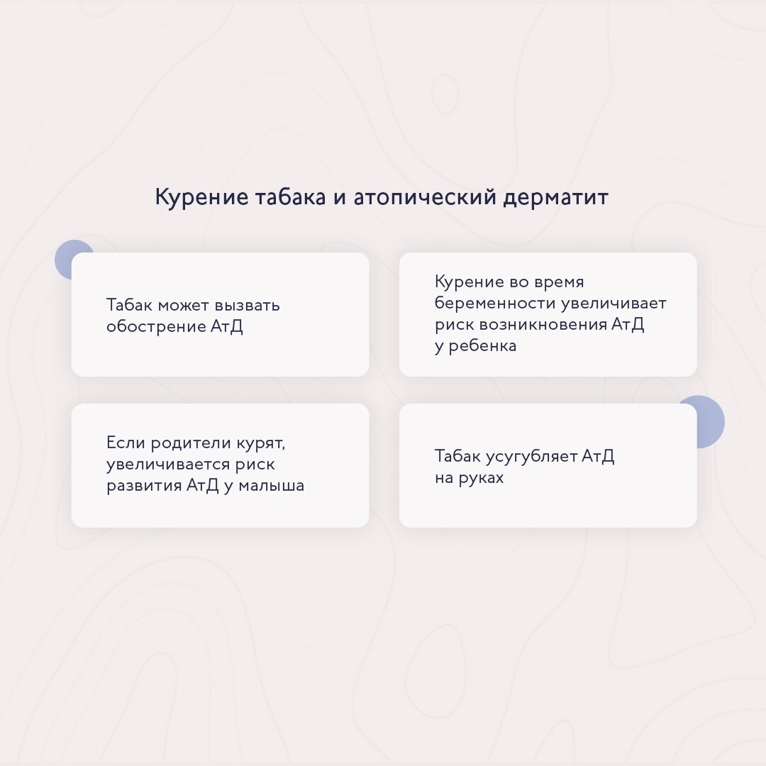 ◌ Табачный дым - раздражитель и загрязнитель, который проникает через атопичную кожу, имеющую проницаемый барьер. Это вызывает воспалительный иммунный ответ.