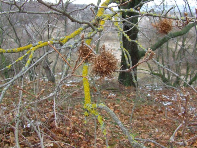 Побеги в таких “клубках” обильно растут и ветвятся, но выглядят необычно – истонченные, укороченные, искривленные, уплотненные, перепутанные, часто с деформированной листвой и почками.