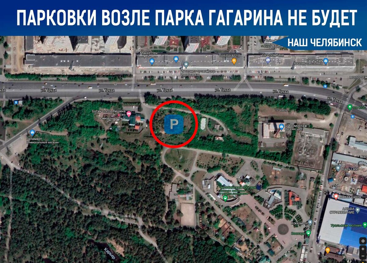❌🅿️В Челябинске отказались от строительства скандальной парковки у ЦПКиО имени Гагарина. Все из-за негативной реакции горожан - в администрацию поступило 286 обращений жителей против строительства парковки. ❓ Как считаете, нужна ли там парковка? Комиссия по подготовке проекта Правил землепользования и застройки пришла к выводу, что необходимость строить парковку недостаточно обоснована и рекомендовала отказать в строительстве. Окончательное решение по данному вопросу должна принять глава города Наталья Котова. ℹ️ Многоуровневую стоянку на 500 мест собирались строить в зеленой зоне, примыкающей к зоопарку и ЦПКиО имени Гагарина по улице Труда, через дорогу от ЖК «Манхэттен». Проект на слушаниях раскритиковали районные депутаты, независимые эксперты и экоактивисты: по словам противников стройки, нормативы машино-мест были рассчитаны неправильно. По материалам chel. dk. ru