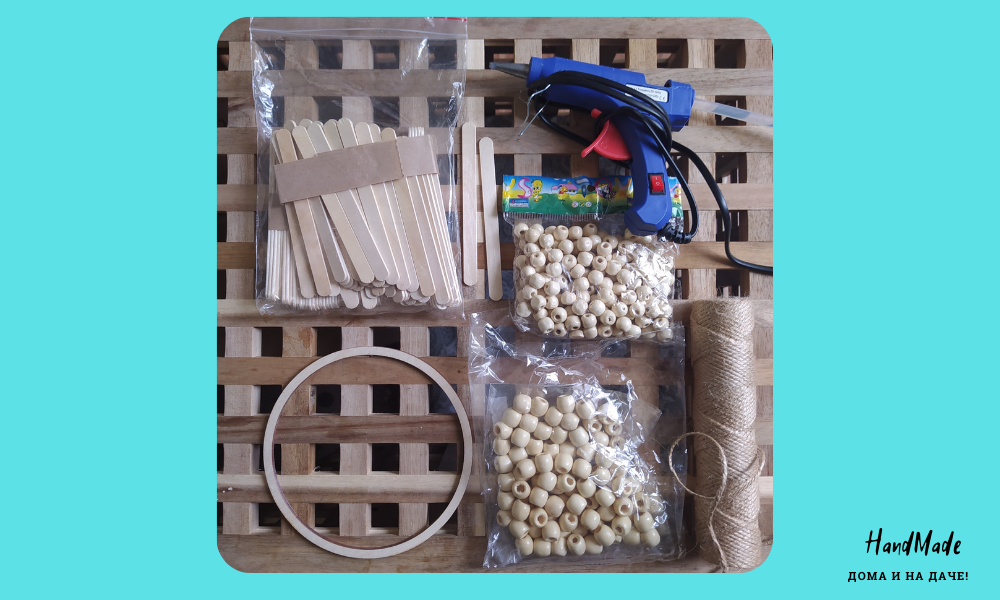 Берем кольцо большего диаметра. По аналогии с первым кольцом начинаем обматывать его джутовым шпагатом, после чего приклеиваем его к панно. Между шпателями подклеиваем бусины большего диаметра. Вот такое панно должно получиться. Только посмотрите, как привлекательно оно выглядит на стене. Такое панно станет прекрасным дополнением интерьера в стиле сканди. Спасибо, что дочитали до конца! Если статья понравилась, поставьте лайк, поделитесь ею в соц.сетях и подписывайтесь на мой канал,