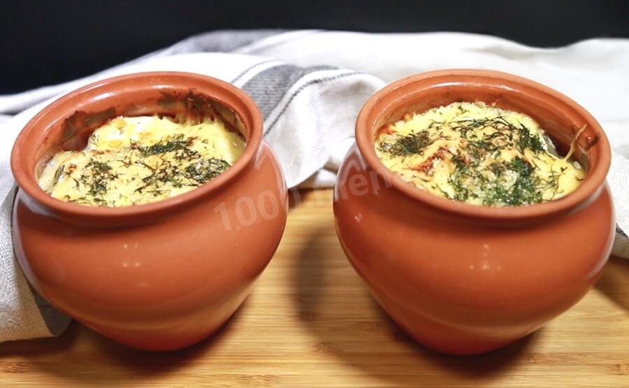 6. Отправляем горшочки в холодную духовку, ставим ее разогреваться до 180 градусов.