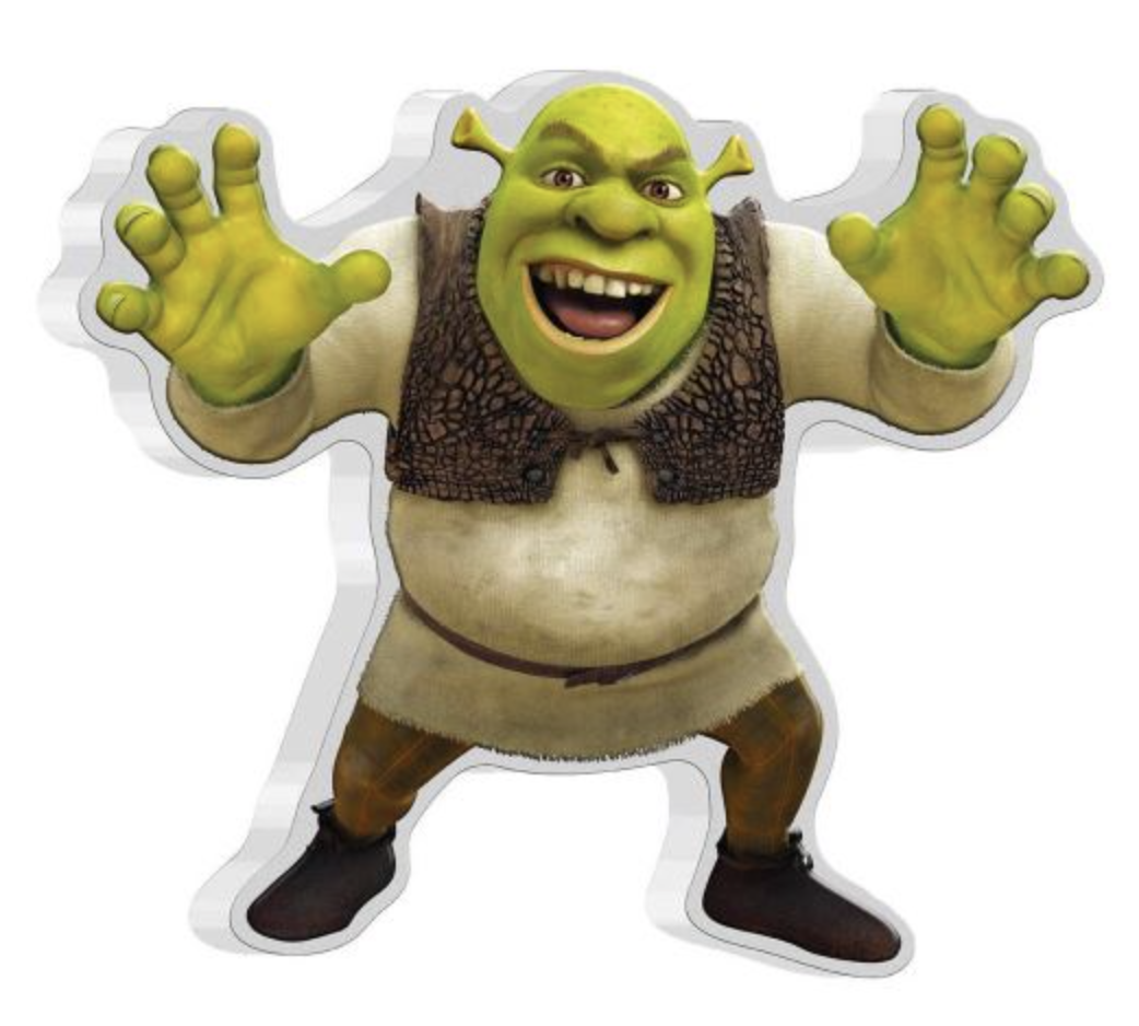 Монетный двор Перты отмечает 20-летие выхода культового мультфильма Шрек на серии серебряных монет достоинством 2 доллара, выпущенных от имени Ниуэ. Оборотная сторона будет иметь цветное изображение, а сами монеты чеканятся в необычной форме, повторяющей силуэты персонажей мультфильма. На официальном сайте МД Перты уже можно приобрести монеты со Шреком, Ослом и Котом в сапогах. На реверсе представлены их цветные изображения. На лицевой стороне монет необычной формы находится информация о государстве-эмитенте, годе выпуска, номинале, весе и пробе металла. Также привычно размещен портрет Елизаветы II. Фото Шрек, Осел и Кот в с Спецификация коллекционных монет Ниуэ номиналом 2 доллара с цветными изображениями героев культового мультфильма «Шрек» Материал - серебро 999-й пробы; вес - 31.1 гр. (1 oz); размер - 47.5 на 42 мм (Шрек), 30.4 на 50 мм (Осел), 30 на 50.7 мм (Кот в сапогах); максимальный тираж - по 1000 экземпляров каждый вариант; стоимость на официальном сайте монетного двора -