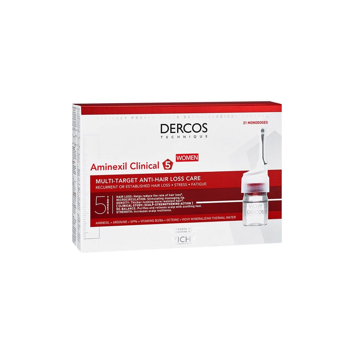 Комплексное средство и уходовая косметика для волос, которая действует на корни, кожу головы и волокно волоса, помогая эффективно бороться с выпадением волос. Выпадение волос может быть связано с самыми разнообразными факторами: стрессом, экологией, диетой, изменением гормонального фона (например, после родов и в период менопаузы), сезонным ослаблением организма. Иногда возникшая проблема может усугубиться вследствие неправильного ухода — чрезмерного использования средств для укладки, горячих инструментов, частого окрашивания. Впервые эксперты Лабораторий VICHY установили, что для решения проблемы выпадения волос нужно воздействовать не только на корень волоса, но и на кожу головы, которая может ослабляться под влиянием негативных внешних и внутренних факторов. AMINEXIL INTENSIVE 5 — первое комплексное средство, которое действует на всех уровнях: на корни волос, кожу головы и волокно волоса, помогая эффективно бороться с выпадением волос. Умеренное выпадение: одна монодоза в день, 3
