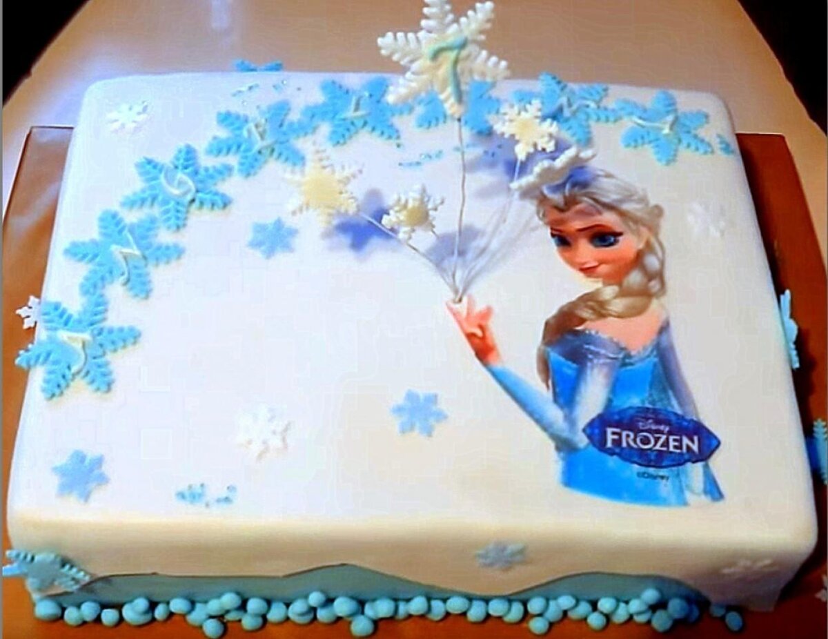 Детский сладкий торт с персонажем из любимого мультфильма! Торт с главной героиней мультфильма Холодное Сердце порадует каждую девочку (а, может быть, и некоторых мальчиков)! Подробный видео рецепт об украшении такого тортика даст возможность каждой маме порадовать своих малышей! ИНГРЕДИЕНТЫ НА 20 ПОРЦИЙ Коржи песочные - 120гр Крем заварной - 900гр Крем масляный - 400гр Мастика - 900гр Пищевой краситель - 10гр ШАГ 1: Как украсить торт холодное сердце своими руками? Подготовьте все для украшения торта, это: собранный, пропитанный и выровненный под мастику медовик (или любой другой торт), изображение Эльзы на сахарной бумаге, мастика двух цветов, белая и голубая, перламутровая пудра, проволочка, утюжок, валик, скалка, ШАГ 2: Раскатайте и вырежьте тонкую ленту из голубой мастики, скатайте ее в рулон. Оберните лентой торт сбоку по всему периметру. ШАГ 3: Быстро, чтобы лента в рулоне не склеилась, оберните торт и хорошо разгладьте утюжком. ШАГ 4: Раскатайте пласт из белой мастики. ШАГ 5: