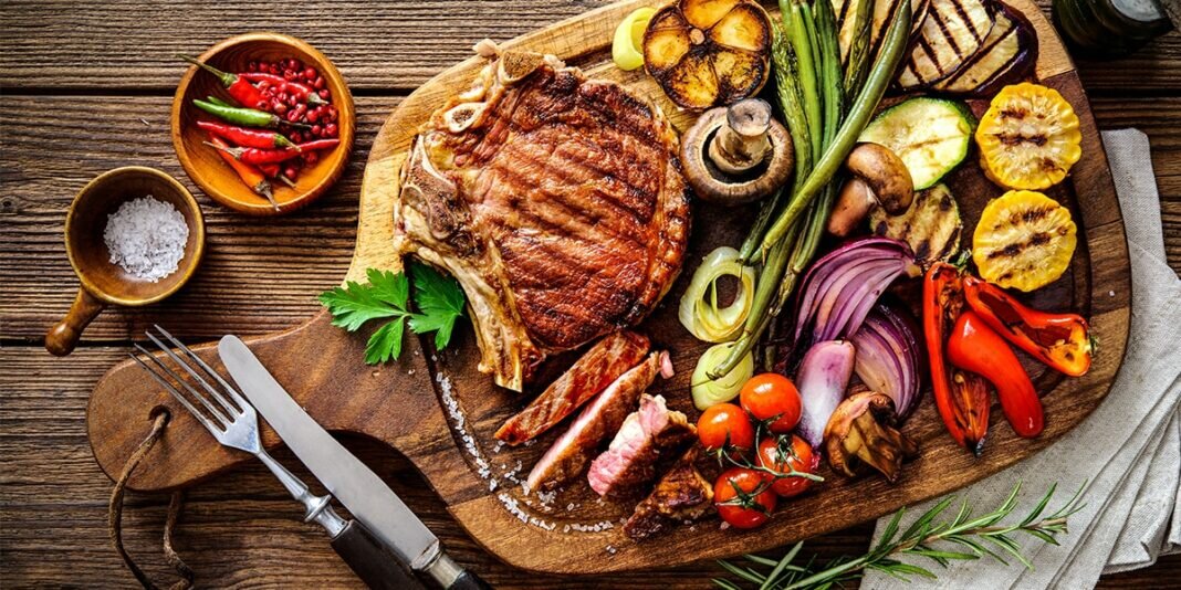 1. Жареные овощи 1 болгарский перец (150 г) 1 кабачок (150 г) 4 лука шалот (150 г) 1 головка чеснока пучок тимьяна соль, перец Оливковое и сливочное масло Овощи нарежьте на крупные кубики. Уберите в отдельную миску. Половину чеснока мелко нарежьте, другую оставьте целую, только Очиститe oт кожуры. На оливковом масле начните обжаривать зубчики чеснока и тимьян. Чуть позже добавьте кусочек сливочного масла и готовьте пока чеснок не подзолотится. Масло процедите и влейте в овощи, хорошо перемешайте. Овощи жарьте быстро на сильном огне 3-5 минут. В середине процесса добавьте нарезанный чеснок и доведите овощи до готовности. Уберите под фольгу до подачи. 2. Запеченный картофель с лимонно-тимьяновой заправкой 1 кг беби-картофеля соль, перец, сушеный чеснок 3 зубчика чеснока 1 лимон сок половины лимона 20 мл оливкового масла листья 4-5 веток тимьяна Духовку разогрейте до 200 градусов. Картофель нарежьте на дольки и выложите на противень. Добавьте специи и сбрызните маслом. Хорошо перемешай