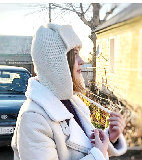 Для тех кому нравится хит сезона – Шапка-ушанка. И для тех моих подписчиц, которые ждали мою готовую работу, показываю шапку-ушанку. Демонстрирует ее моя дочь. Для тех кому интересно, вязала я ее по мастер-классу с канала «Сметанка вяжет спицами». Связать можно за два дня. После того как я закончила вязать саму шапку, связала завязки на 6 петлях полой резинкой в одну нить на спицах меньшего размера. А затем перешла к кетлевке. Которую делала тоже в одну нить на спицах меньшего размера. Получилась очень красиво и аккуратно. Вот так выглядит лицевая и изнаночная сторона. И вот такая шапочка получилась. Расход пряжи 160гр. Из стограммового мотка осталось совсем немного, а 25 граммовых мотков ушло 2 целых и еще немного от третьего. При желании шапку можно утеплить подкладом. Или вязать из более пушистой пряжи. Мастер класс очень понятный, подробный, всем рекомендую, кому понравилась такая модель шапки. Вяжите с удовольствием. На моем канале есть статьи о модных аксессуарах этой осени. Посм