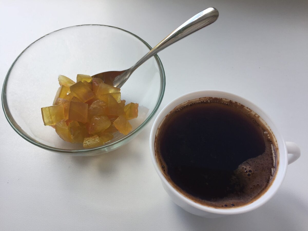 В кипящий сироп выкладываем нарезанные корочки и на маленьком огне доводим до кипения, изредка помешивая, варим минут пять. оставляем остудиться, обычно оставляю на ночь. На следующий день повторяем и так три-четыре раза, пока цукаты не станут прозрачными и янтарными.